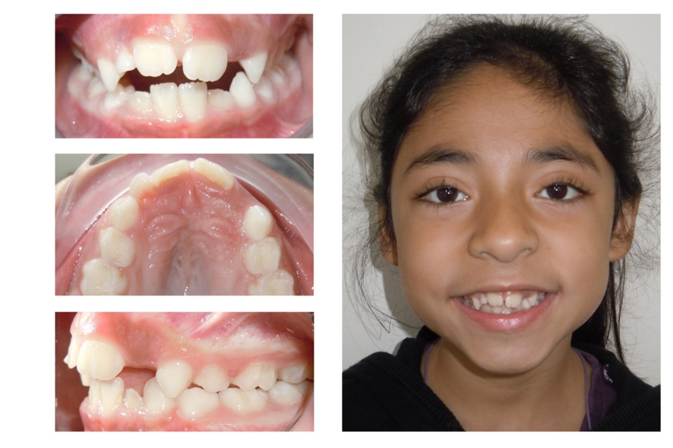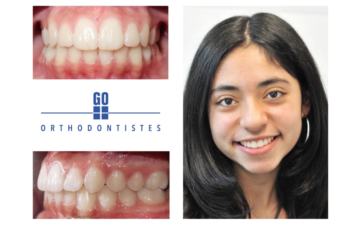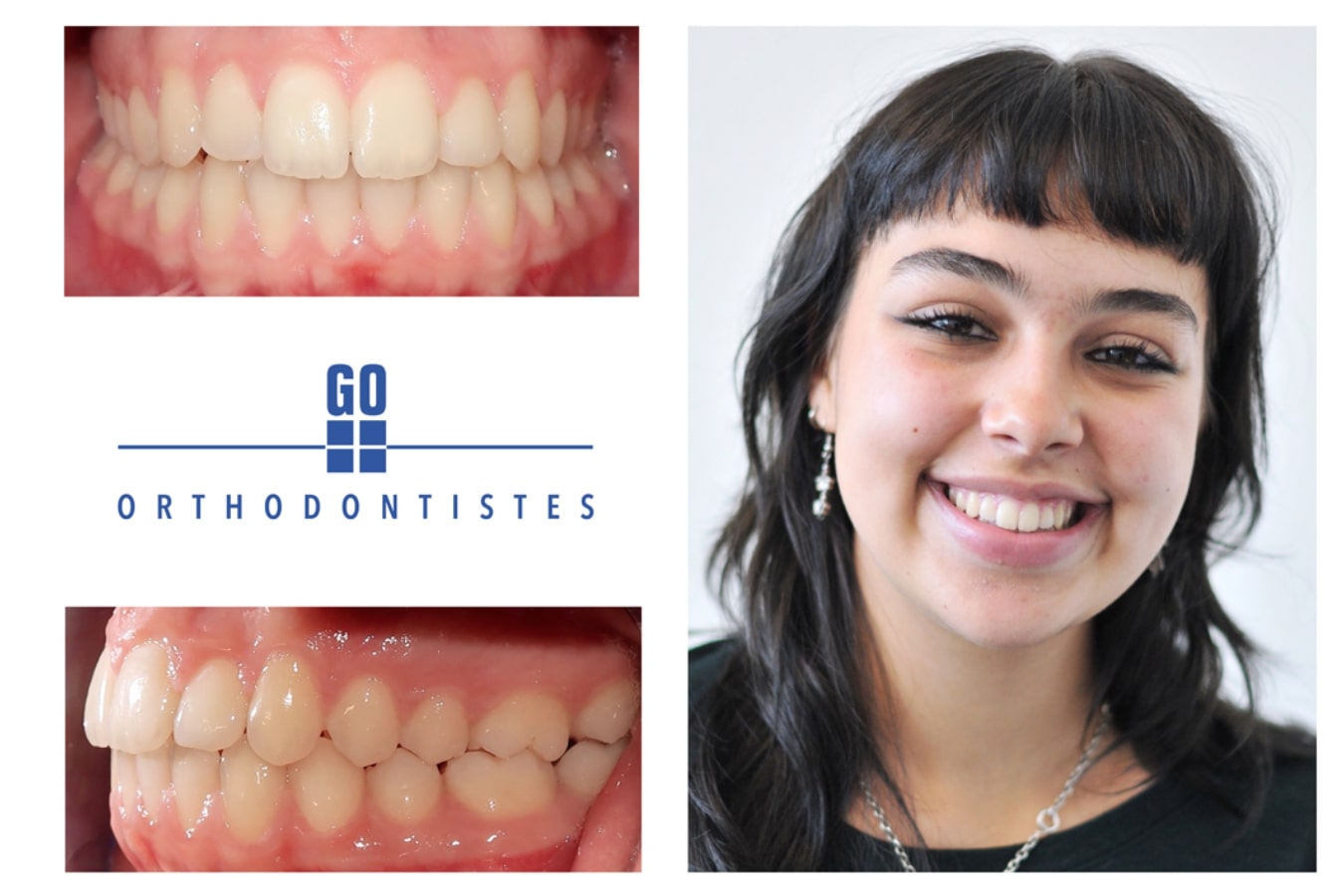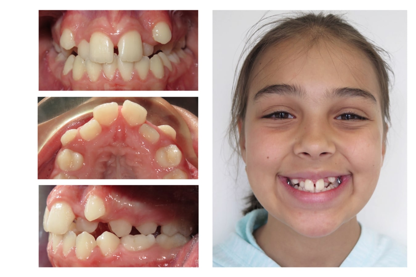 Cette patiente s’est présentée en dentition mixte avec un maxillaire étroit et un manque d’espace pour l’éruption des incisives latérales supérieures. Nous avons commencé un traitement Invisalign pour créer de l’espace pour les incisives supérieures et élargir l’arcade dentaire supérieure. Nous avons également pu corriger la béance antérieure et mettre en contact les dents antérieures supérieures et inférieures.