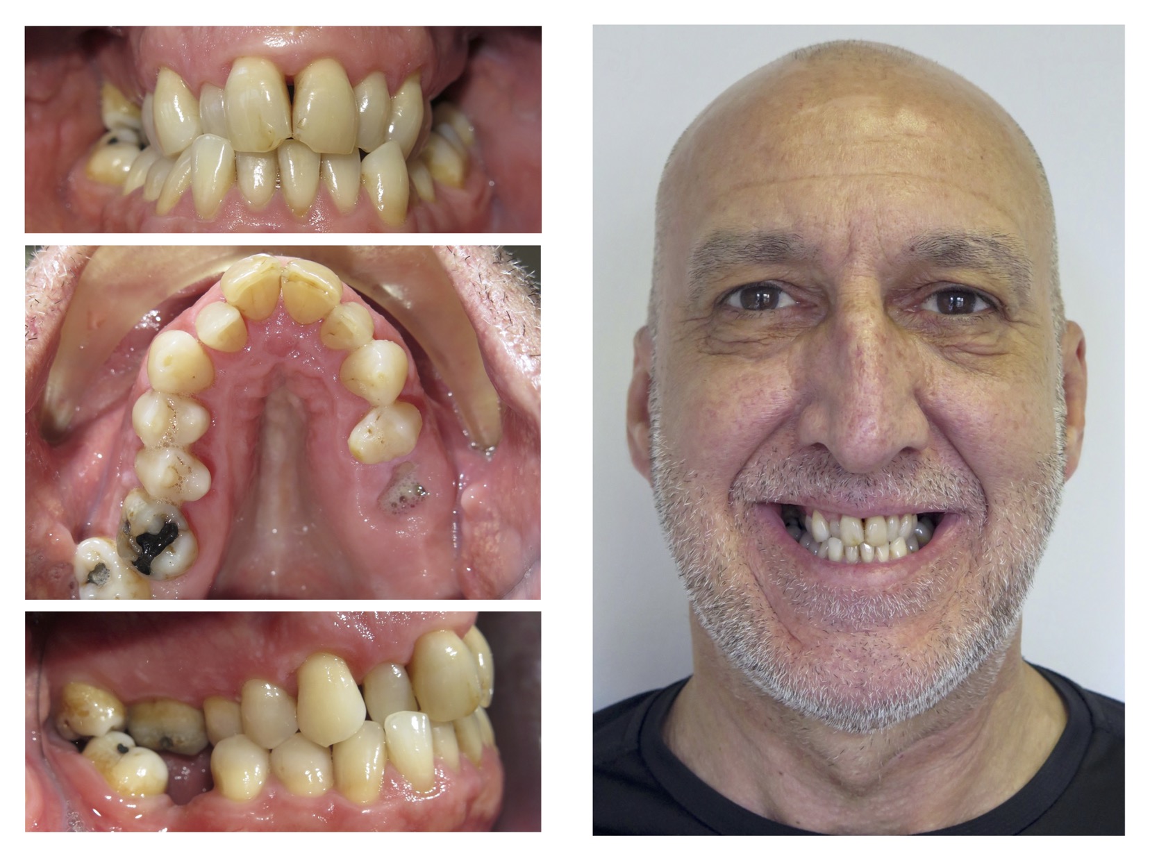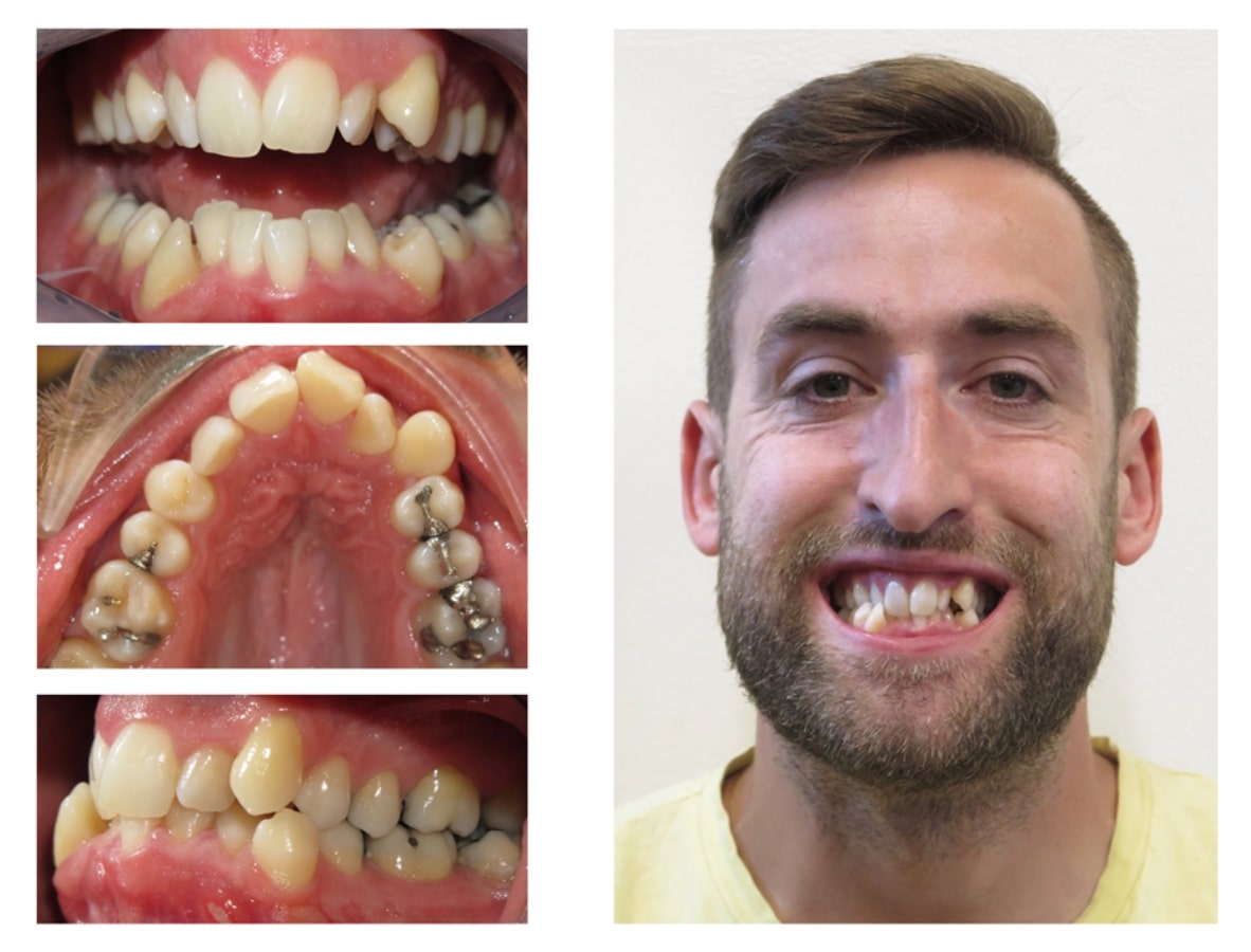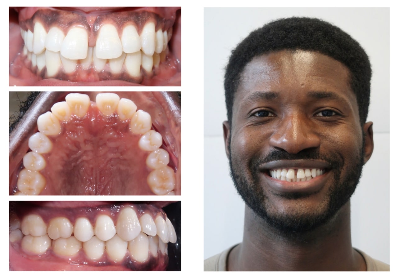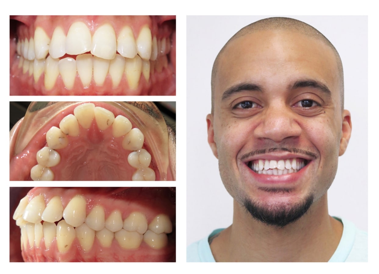 Ce patient présentait un chevauchement supérieur et inférieur important et des arcades dentaires étroites. Il avait une canine et une prémolaire inférieures en occlusion croisée, et sa canine supérieure droite était incluse et n’était pas dans l’arcade dentaire. En raison du chevauchement sévère, il a été décidé de retirer la canine incluse ainsi que trois prémolaires afin de conserver la symétrie entre les arcades dentaires. Le traitement a duré 36 mois et a abouti à un changement spectaculaire en termes d’alignement dentaire, de supraclusion et de surplomb horizontal. Le remodelage des bords usés des dents antérieures a également été réalisé en guise de finition.