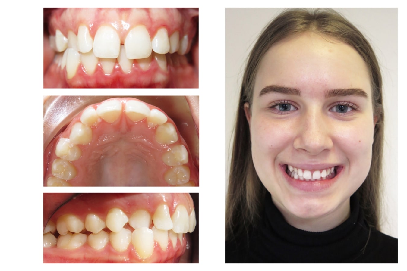Cette patiente s’est présentée en dentition mixte, avec une occlusion croisée postérieure des deux côtés de l’arcade supérieure, ainsi que deux incisives latérales supérieures en occlusion croisée. Un traitement Invisalign a été commencé afin d’élargir l’arcade supérieure, de corriger les malocclusions croisées et de faire de la place pour toutes les dents permanentes. Une fois toutes les dents permanentes en occlusion, une deuxième phase d’aligneurs Invisalign a été utilisée pour corriger les rotations mineures et le chevauchement.